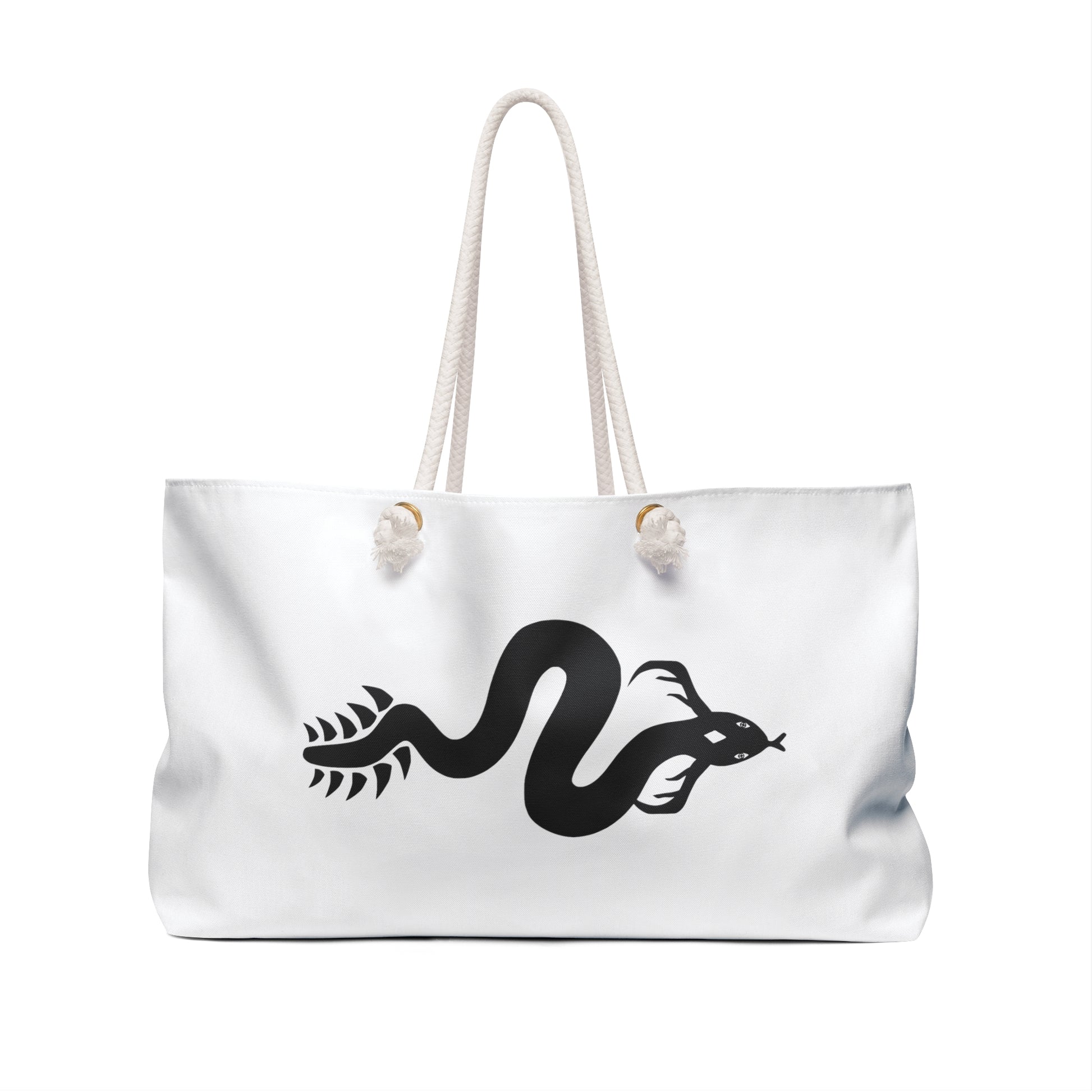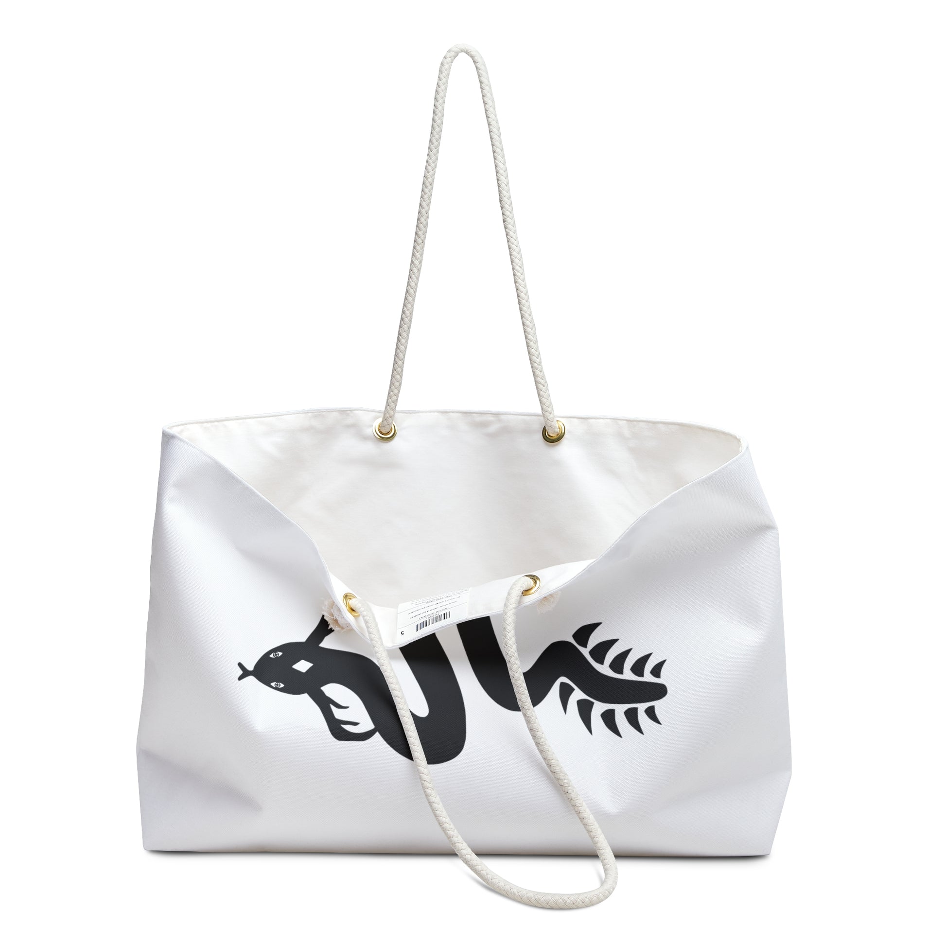 Our oversized Weekender Tote is perfect for your weekend at the beach or in town. The wide-mouthed, durable bag holds a generous amount of personal items and is easily held by its thick rope handles.